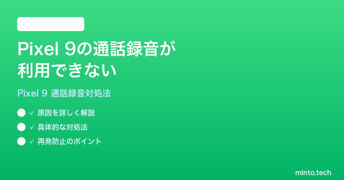 Google Pixel 9で通話録音が利用できない・機能しない場合の対処法を紹介しました。問題解決のポイントを改めて整理します。