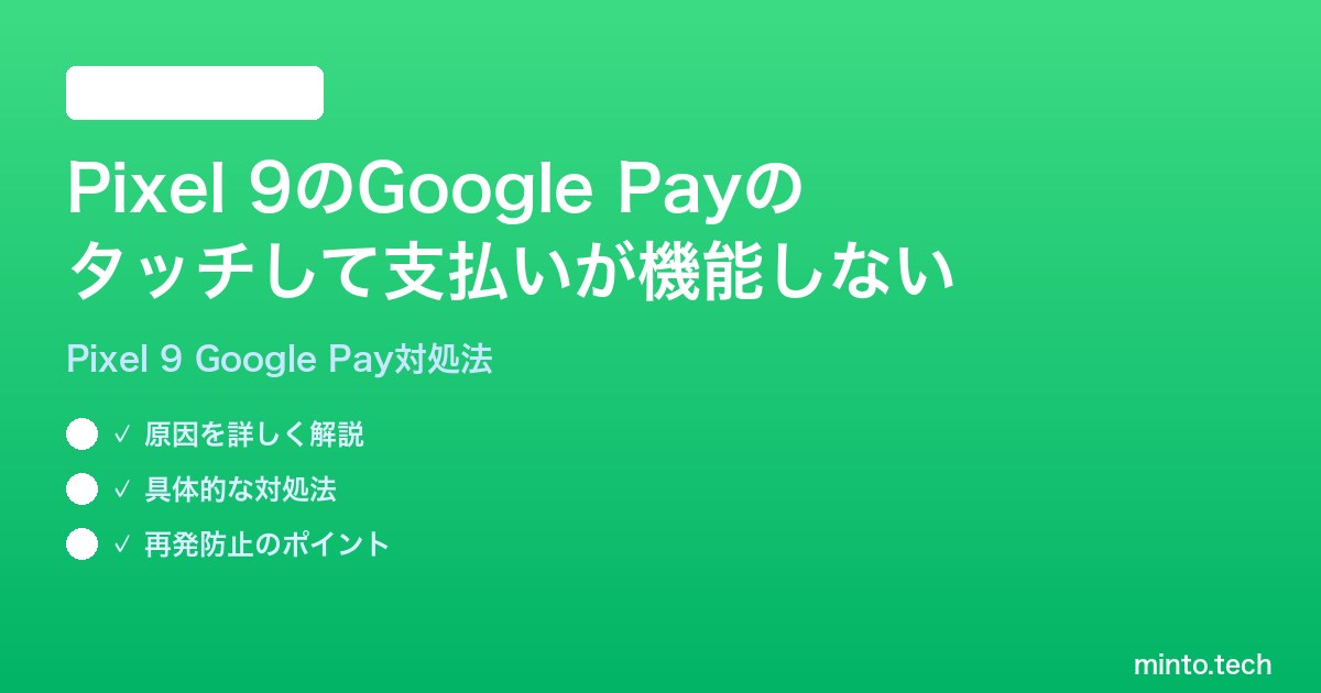 Google Pixel 9のGoogle Pay(タッチしてPay)が機能しない問題は、多くの場合以下の手順で解決できます。