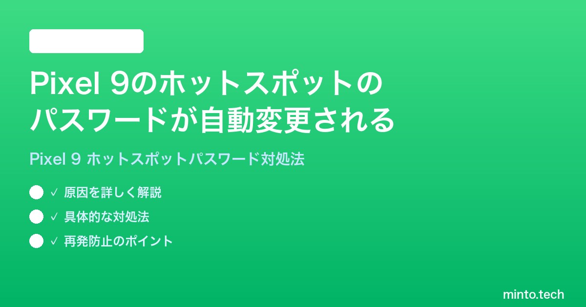Google Pixel 9のホットスポットパスワードが自動変更される問題は、Android 16の新しいランダムパスワード自動生成機能・Googleアカウントによるクロスデバイス同期・キャリアプロファイルの上書き・Android 16の既知バグという4つの原因のいずれか、または複数の組み合わせで発生します。