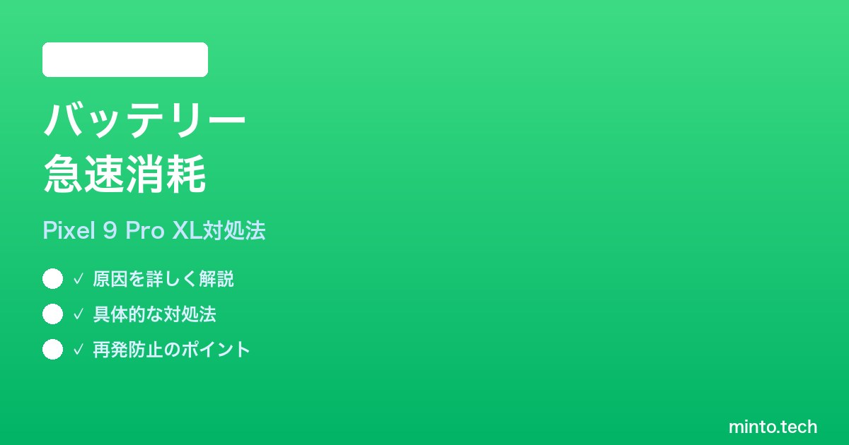 Pixel 9 Pro XLのAndroid 16アップデート後のバッテリー急速消費問題は、ほとんどの場合ソフトウェアの設定や最適化で解決できます。対処のポイントをまとめます。