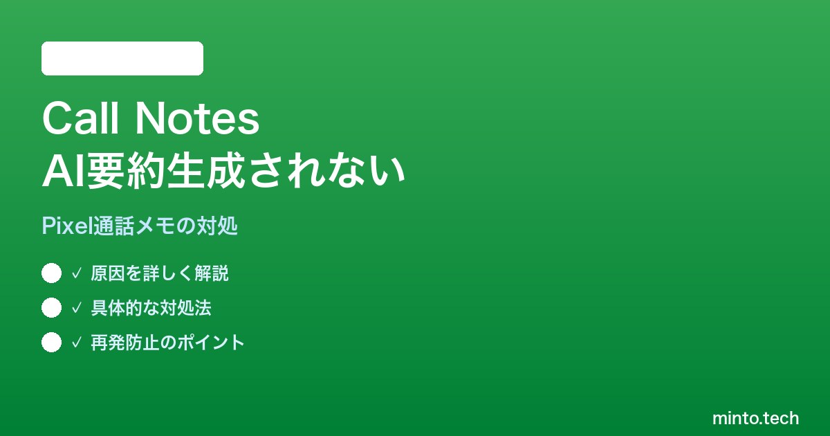 Pixel 9シリーズの目玉機能として登場した「Call Notes(通話メモAI要約)」を使おうとしたのに、通話後に要約が生成されない、そもそもメニューに項目が出てこない、というケースで困っていませんか。Tensor G4の処理性能を活かしたGemini Nano駆動のAI要約機能ですが、利用には地域や機種、設定面の前提条件が複数あり、思ったほど簡単に動いてくれないことがあります。本記事では、Android 16環境でCall Notesの要約が生成されない原因と、現実的な対処法を解説します。