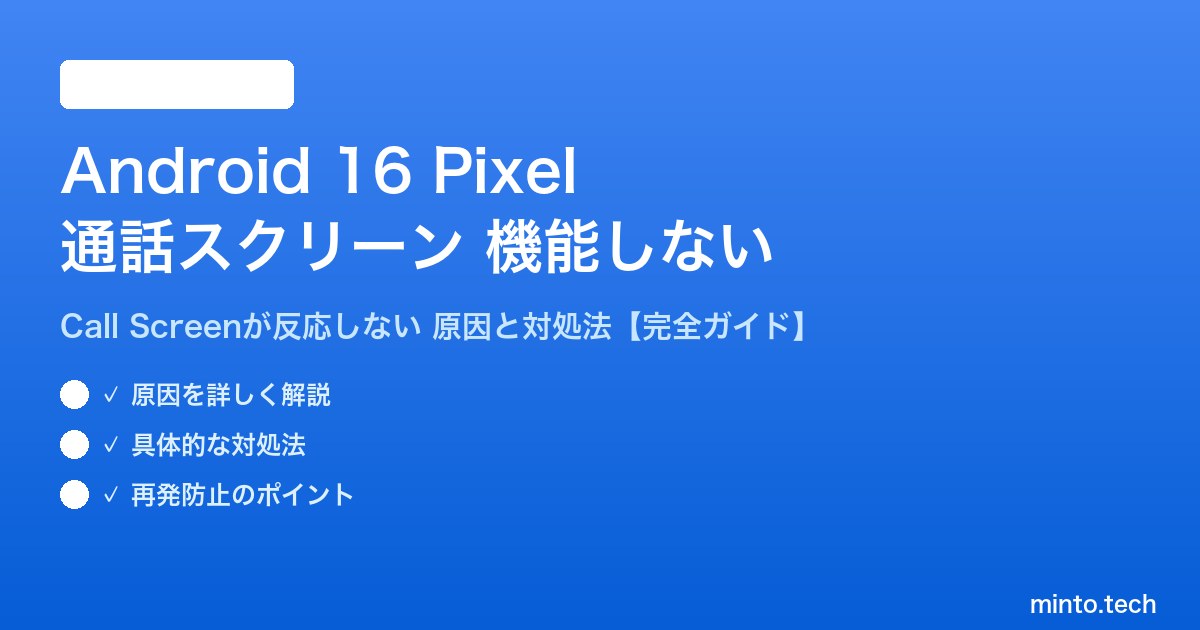 この記事では、Google Pixel端末の通話スクリーン(Call Screen)が機能しない・反応しない問題について、原因と具体的な対処法を詳しく解説します。Android 16での改善点や日本語対応状況も含めた完全ガイドです。