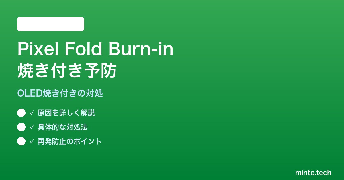 本記事では、Pixel Fold(2代目、3代目を含む)の内部大画面で焼き付きが起きる仕組みと、起きてしまった場合の軽減策、そして何より「これから焼き付かないようにする予防策」を徹底的に解説します。Auto-brightness(自動輝度)の最適設定、ダークモードの活用、Pixel Shift(ピクセルシフト)技術の理解、Googleの公式保証範囲、焼き付き診断アプリ、リフレッシュ動画の使い方まで、すぐに実践できる知識を体系的にまとめました。