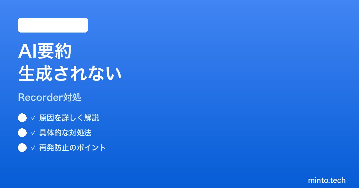 レコーダーの言語設定を「日本語」にしたまま英語混じりの会話を録音すると、英語部分が認識精度低下→要約に反映されない、という事象が起きます。「設定」→「文字起こし」→「複数言語の認識」を有効にしてください。