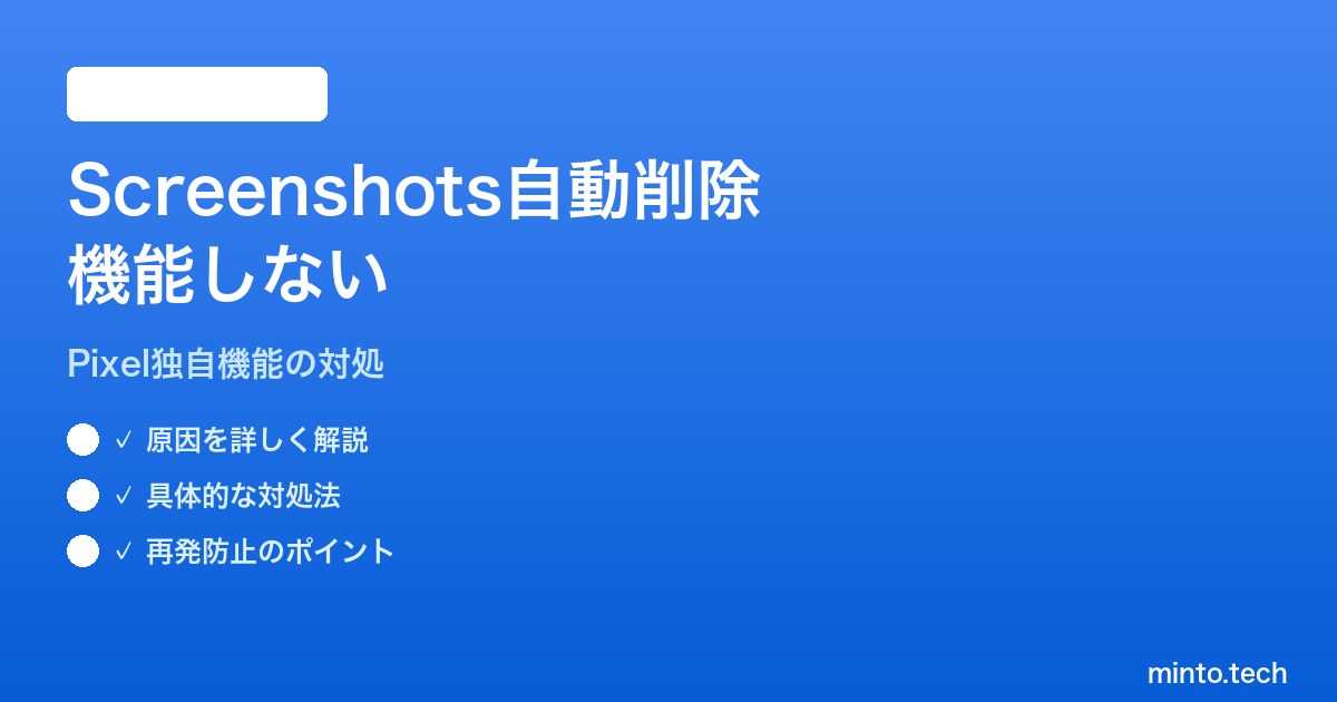 ところが実際に使ってみると「設定したのに一向に削除されない」「ファイルアプリで30日以上前のスクリーンショットが残り続ける」「自動削除の項目自体が見つからない」といったトラブルが頻発しています。本記事では、Pixelのスクリーンショット自動削除が機能しない原因と解決策を、Google Photosの同期状態・ストレージ権限・ロック画面スクリーンショット・バックアップ条件などあらゆる観点から詳しく解説します。