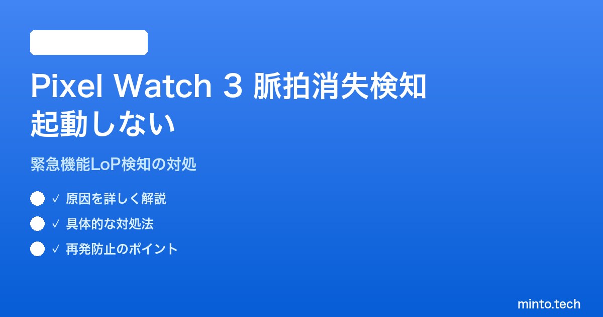 Pixel Watch 3に搭載された「Loss of Pulse Detection(脈拍消失検知/LoP検知)」は、心停止を疑う状況をスマートウォッチが自動検知し、緊急通報サービスへ自動発信するという画期的な救命機能です。しかし「設定画面に項目が表示されない」「オンにしたのに起動メッセージが出ない」「米国で買ったのに日本で動かない」など、地域・OSバージョン・アカウント設定に依存した起動失敗が多発しています。