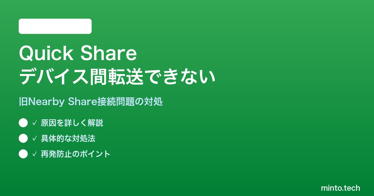 【2026年最新版】AndroidのQuick Share(旧Nearby Share)でデバイス間のファイル転送ができない対処法【完全ガイド】