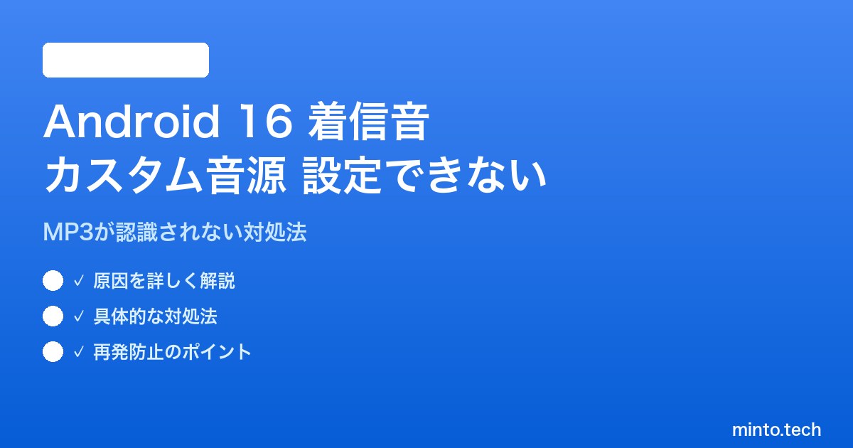 Android 16でカスタム着信音が設定できない問題は、新しいメディアアクセス権限の仕組み・Scoped Storageの完全適用・ファイル配置場所のルール変更が主な原因です。