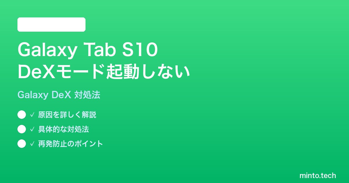 Samsung Galaxy Tab S10のDeXモードが起動しない問題は、ほとんどのケースでケーブル・アダプタの互換性(DP Alt Mode非対応)が原因です。まず使用しているケーブルやアダプタを確認し、DP Alt Mode対応のものに変えることで解決できることが多いです。
