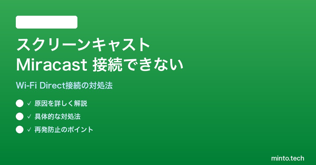 AndroidのスクリーンキャストでMiracastテレビやディスプレイに接続できない主な原因は、テレビ側のMiracast受信モードの未起動Wi-Fi干渉ファームウェアの古さの3つです。