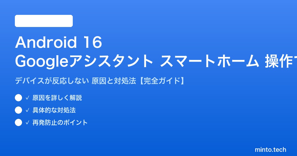 この記事では、Android 16環境でGoogleアシスタントがスマートホームデバイスを操作できない・反応しない問題の原因と、具体的な対処法を詳しく解説します。ほとんどのケースはこの記事の手順で解決できますので、ぜひ最後まで読んでみてください。
