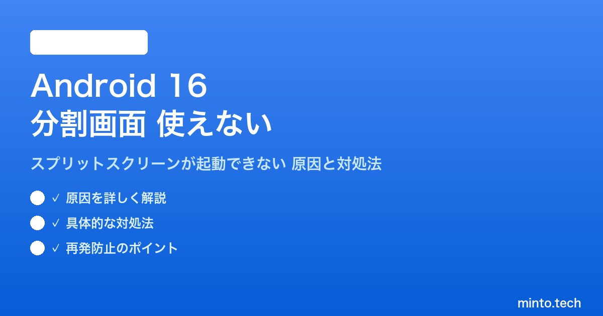 Android 16の分割画面が使えない問題は、ほとんどの場合、起動方法の変更やアプリの非対応が原因です。