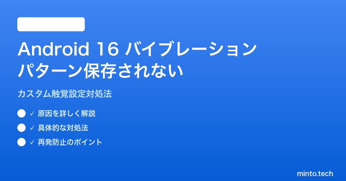 Android 16のバイブレーションパターン設定が保存されない問題の主な原因と対処法をまとめます。