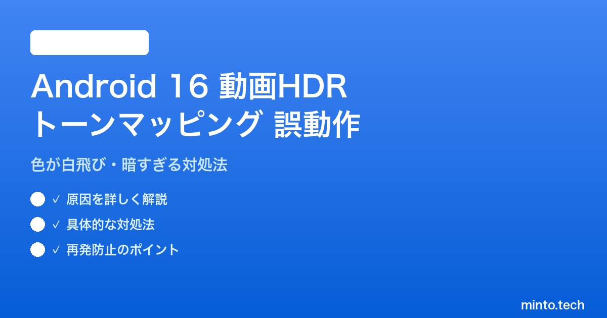 Android 16のHDRトーンマッピング誤動作は、主にSoCドライバーのAPI非対応とメーカー独自機能との競合が原因です。以下の手順で順番に試してください。