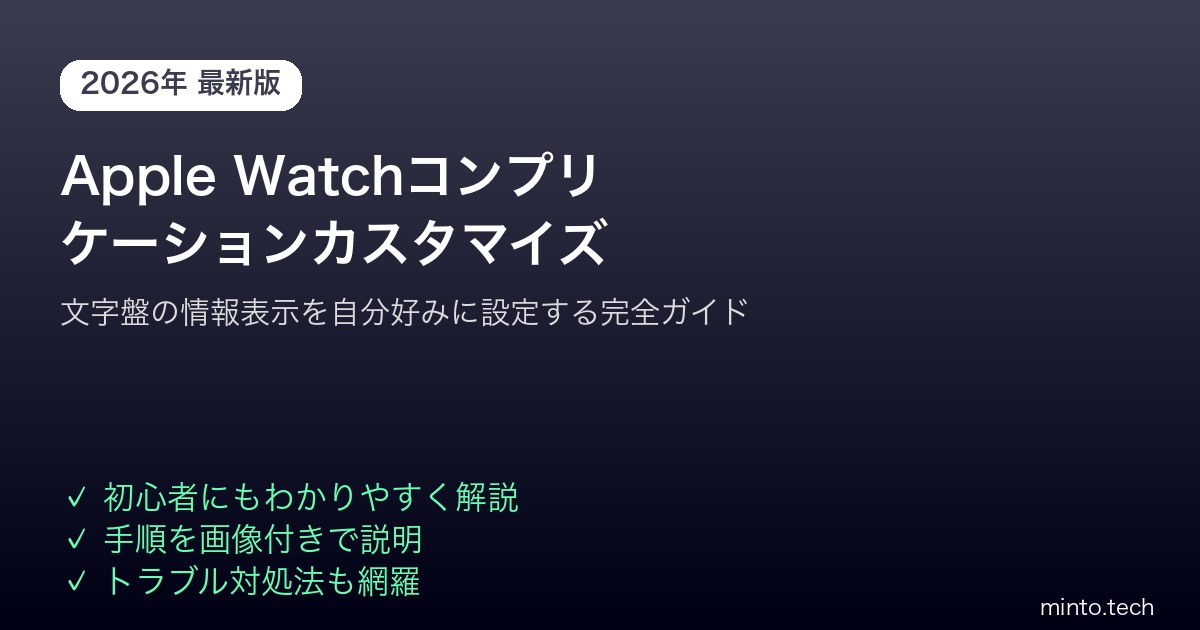 コンプリケーションは、時計の文字盤に情報を表示する機能の呼び名で、もともとは機械式時計の世界から来た用語です。Apple Watchでは、天気・バッテリー残量・心拍数・活動量など、よく使う情報を手首をあげるだけで即座に確認できるようにする機能です。