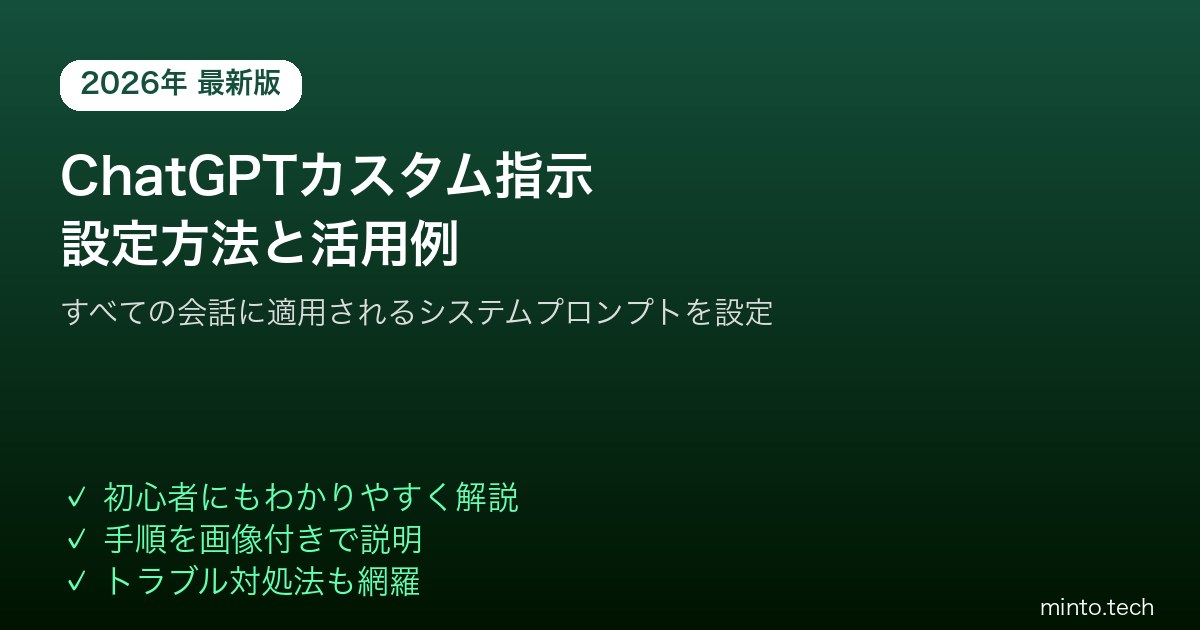 【2026年最新版】ChatGPTのカスタム指示(Custom Instructions)の設定方法と活用例【完全ガイド】