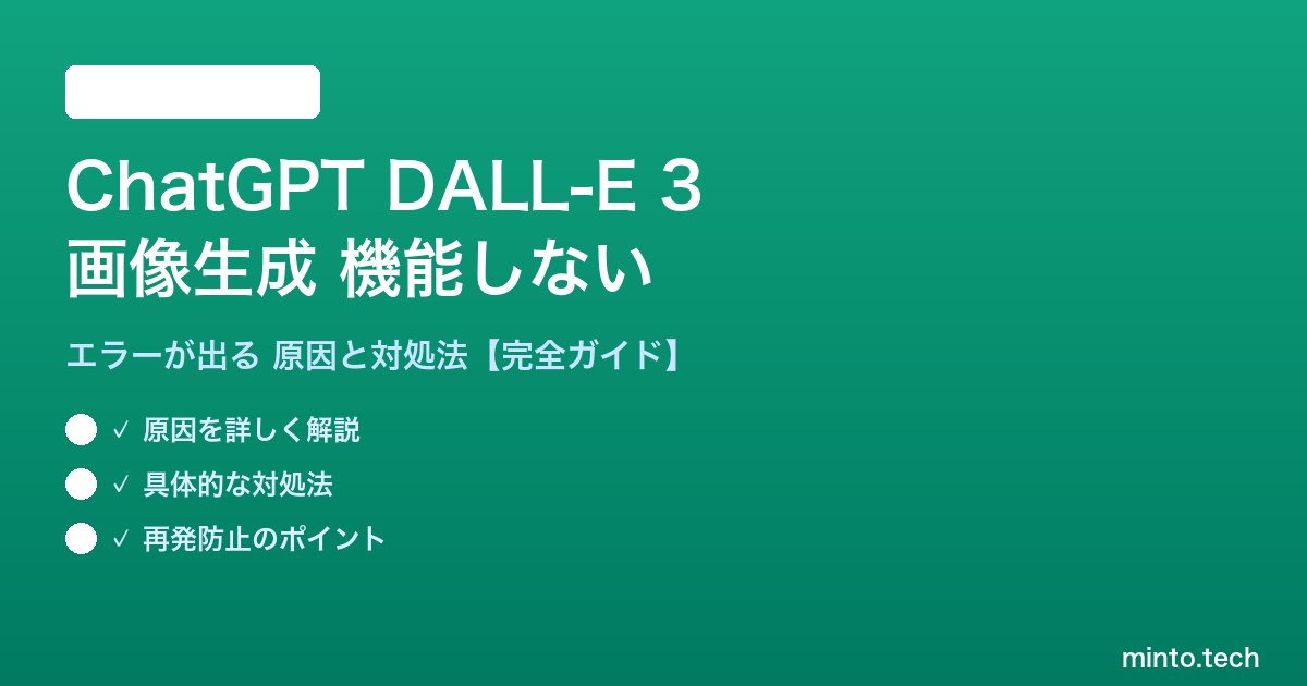 ChatGPTのDALL-E 3(画像生成)が機能しない・エラーが出る場合の主な原因と対処法をまとめます: