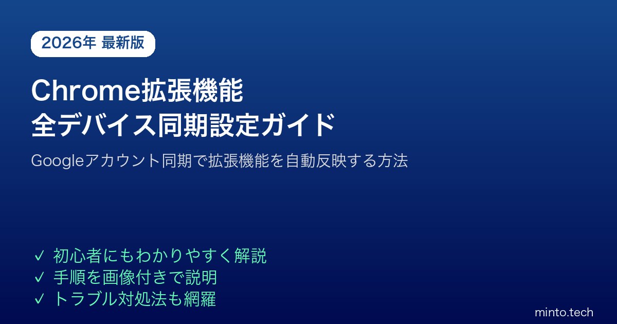- Chrome Web Store公開の拡張機能のみ対応:企業ポリシーで強制インストールされたものや、開発者モードで手動インストールしたローカル拡張機能は同期の対象外です。