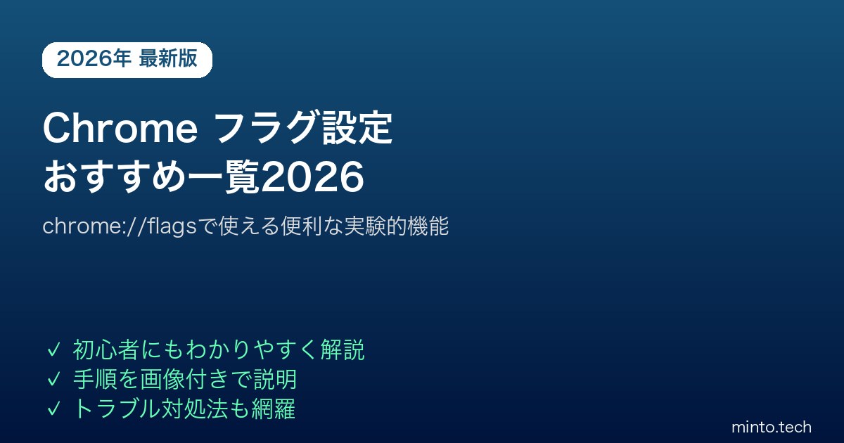 この記事では、chrome://flagsの基本的な使い方から、2026年現在おすすめのフラグ設定までを網羅的に解説します。スムーズスクロール、並列ダウンロード、リーダーモードなど、20個以上のフラグを表でわかりやすく紹介します。