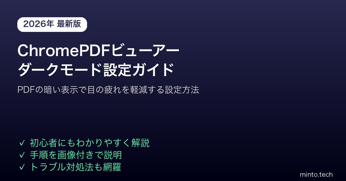 ChromeのPDFビューアーにダークモードを適用する方法を解説します。2026年現在、主に2つの方法があります。