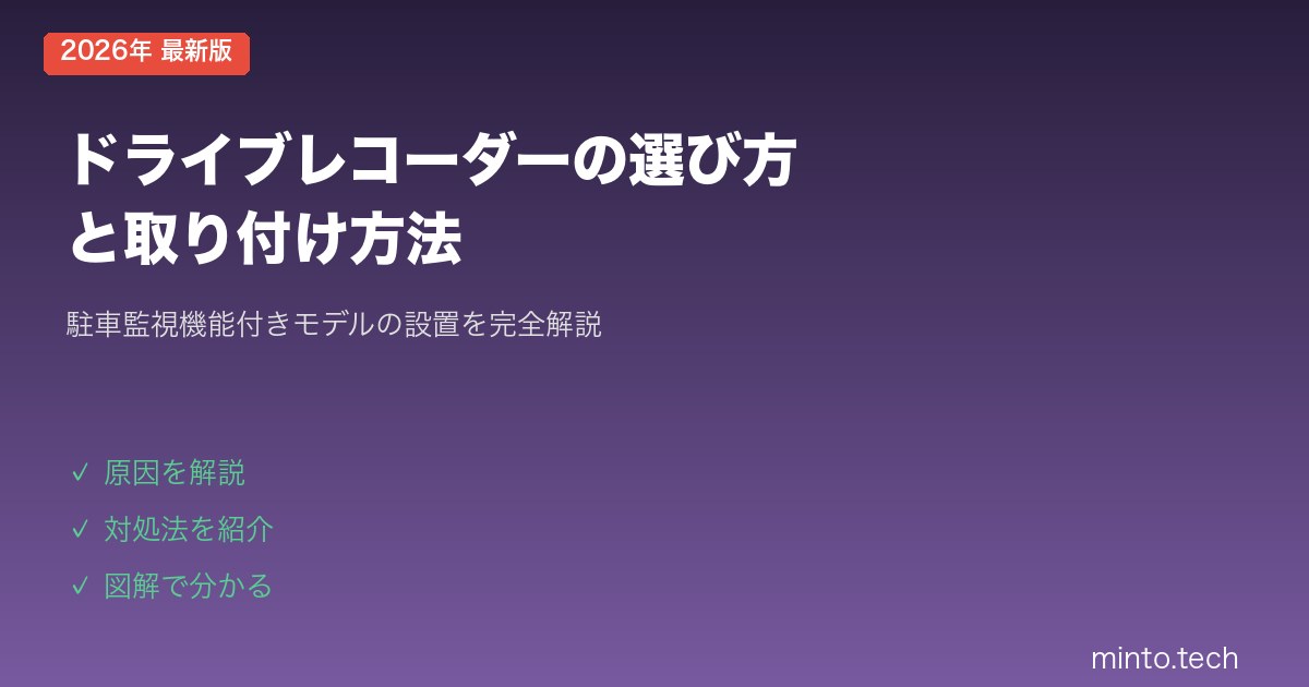 【2026年最新版】ドライブレコーダーの選び方と取り付け方法(駐車監視機能付き)【完全ガイド】