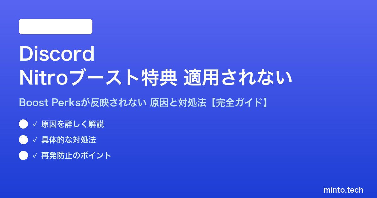 Nitroブースト特典が反映されない問題は、多くの場合、以下のいずれかの原因で発生します。