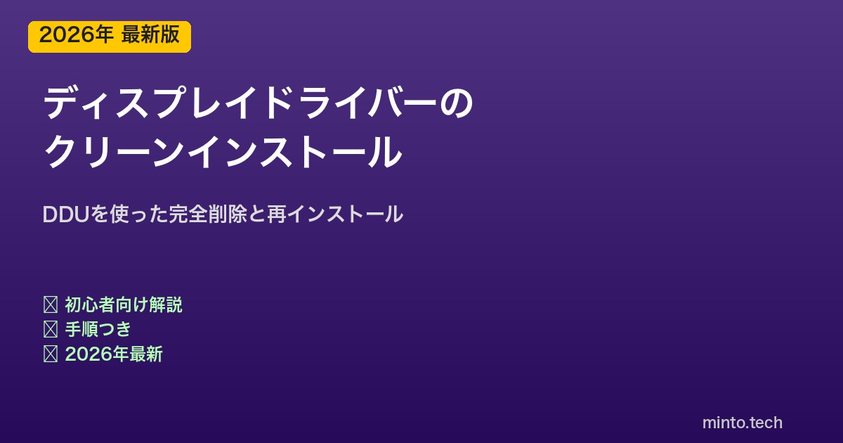 【2026年最新版】PCのディスプレイドライバーのクリーンインストール方法【完全ガイド】