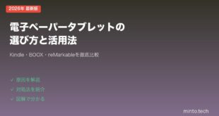 minto.tech スマホ(Android/iPhone)・PC(Mac/Windows)の便利情報をお届け! 月間アクセス160万PV!スマートフォン、タブレット、パソコン、地デジに関する素朴な疑問や、困ったこと、ノウハウ、コツなどが満載のお助け記事サイトはこちら!