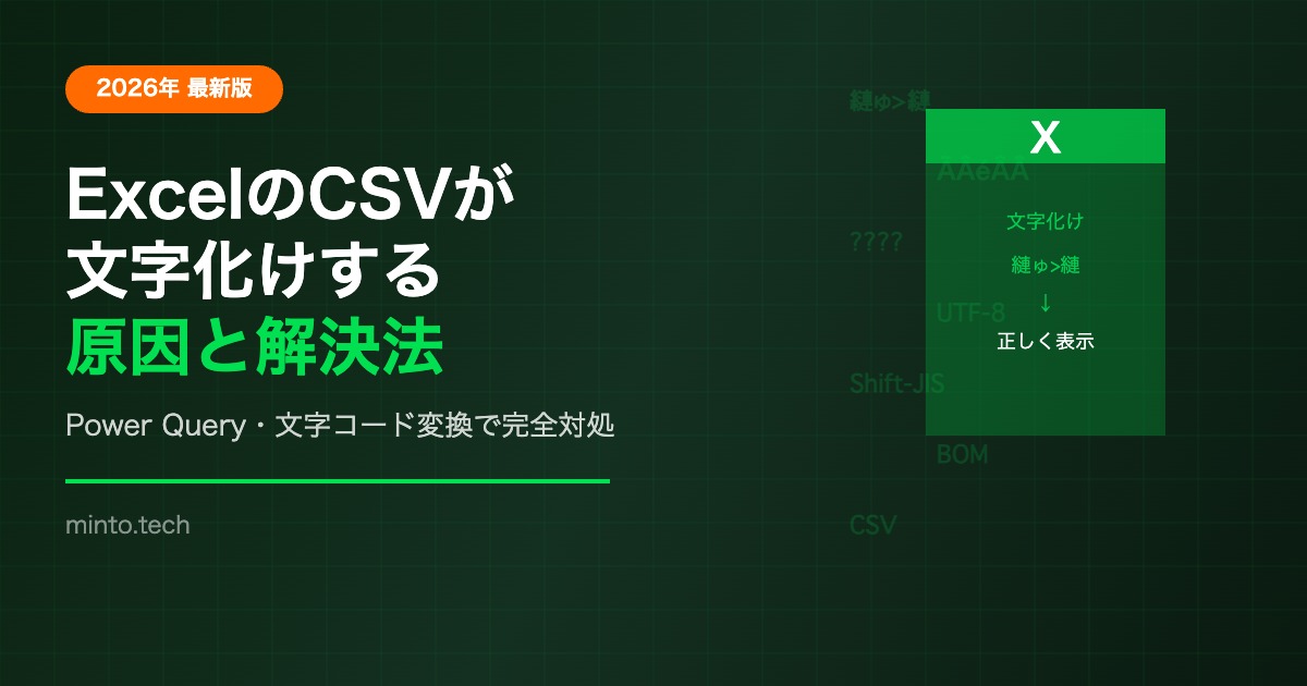 文字化けの原因は明確で、文字コードの不一致が99%の原因です。この記事では、文字化けのしくみを理解した上で、Excel 2016〜2024・Microsoft 365で使える実践的な解決方法をステップ形式で解説します。