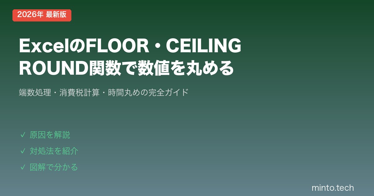 Home / Microsoft / Excel / 【2026年最新版】ExcelのFLOOR・CEILING・ROUND関数で数値を丸める方法【完全ガイド】