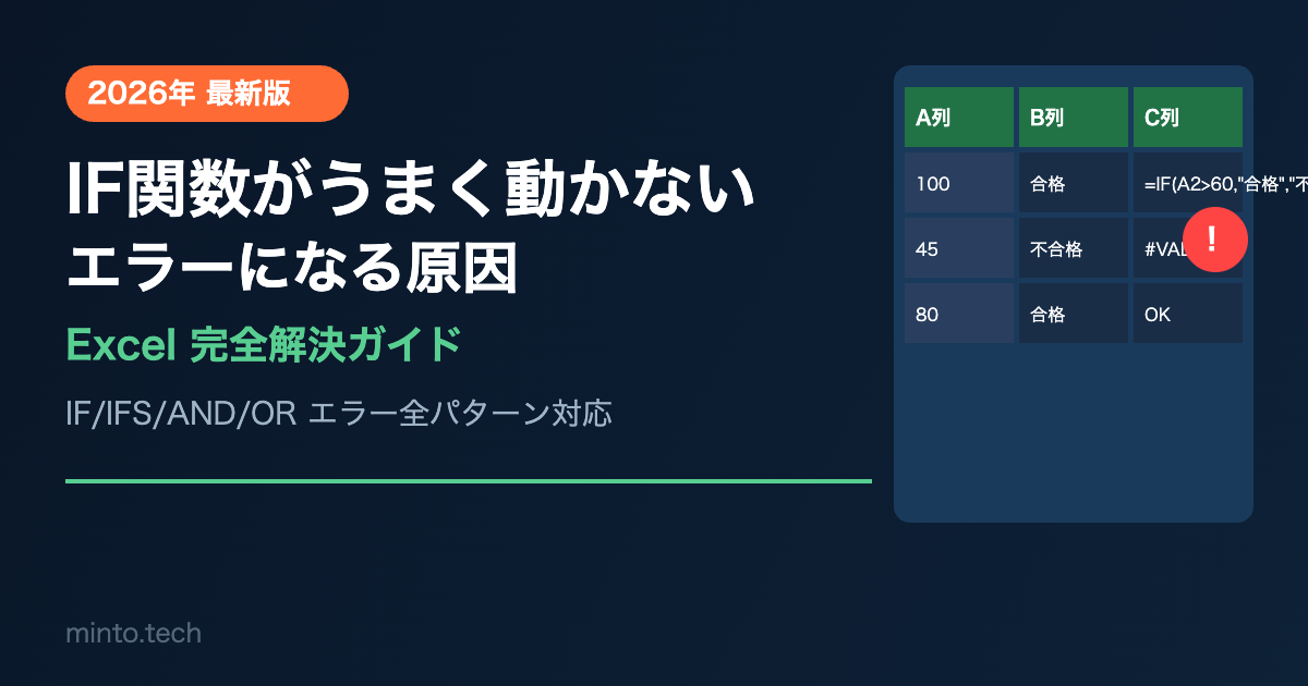 【2026年最新版】ExcelでIF関数がうまく動かない・エラーになる原因と対処法【完全ガイド】