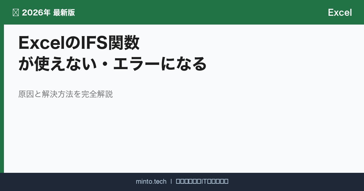 Home / Microsoft / Excel / 【2026年最新版】ExcelのIFS関数が使えない・エラーになる原因と対処法【完全ガイド】