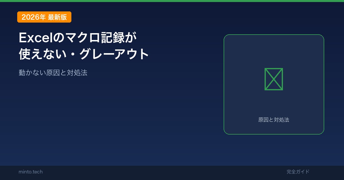 この記事では、Excelのマクロ記録が使えない・グレーアウトする・動かない原因を網羅的に解説し、それぞれの具体的な対処法をステップ形式でわかりやすく紹介します。初心者の方でも順番に試せるように丁寧に説明していますので、ぜひ最後までご覧ください。