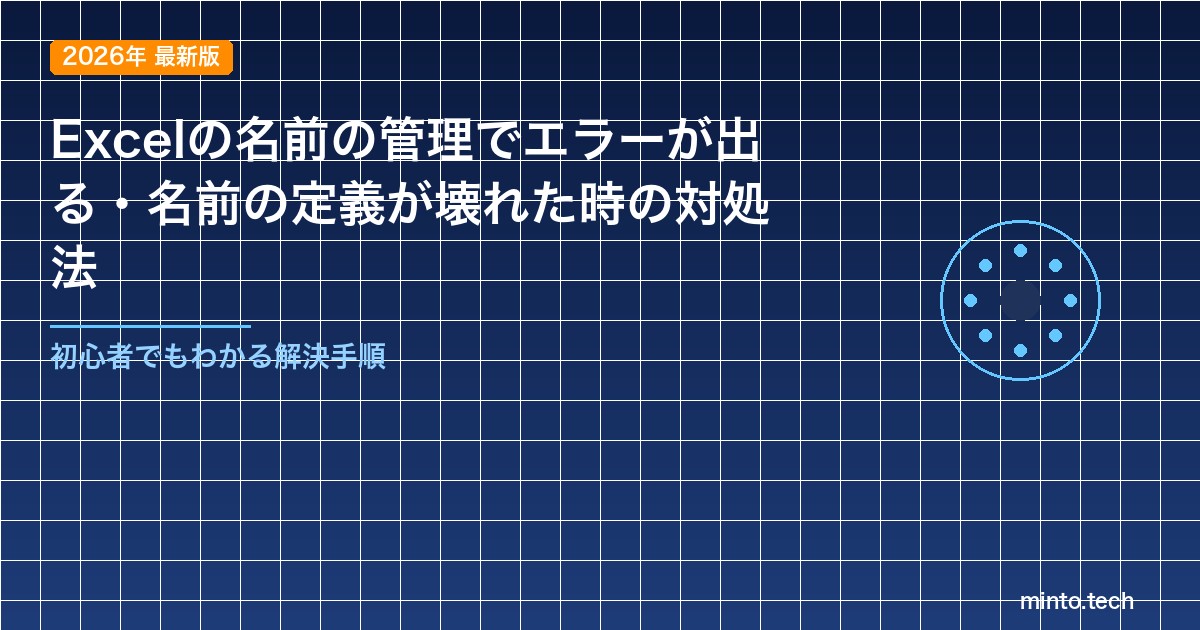 この記事では、名前の管理(Name Manager)でエラーが出る原因と、手動での修正方法、VBAを使った一括削除の方法まで、初心者にもわかりやすく丁寧に解説します。この記事の手順に沿って対処すれば、壊れた名前の定義をすっきり整理し、Excelファイルを正常な状態に戻すことができます。