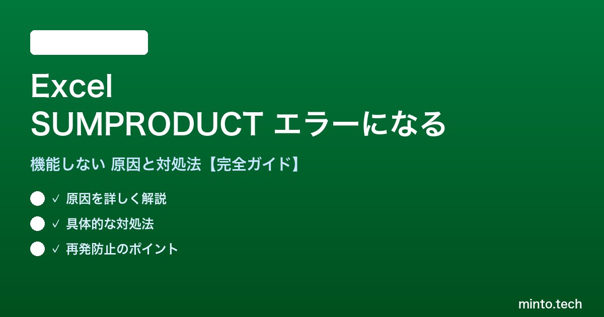 ExcelのSUMPRODUCT関数が機能しない・エラーになる主な原因と対処法をまとめます。