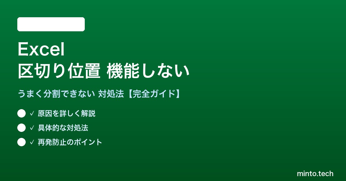 Excelの区切り位置(テキストを列に分割)が機能しない原因と対処法をまとめると、以下の通りです。