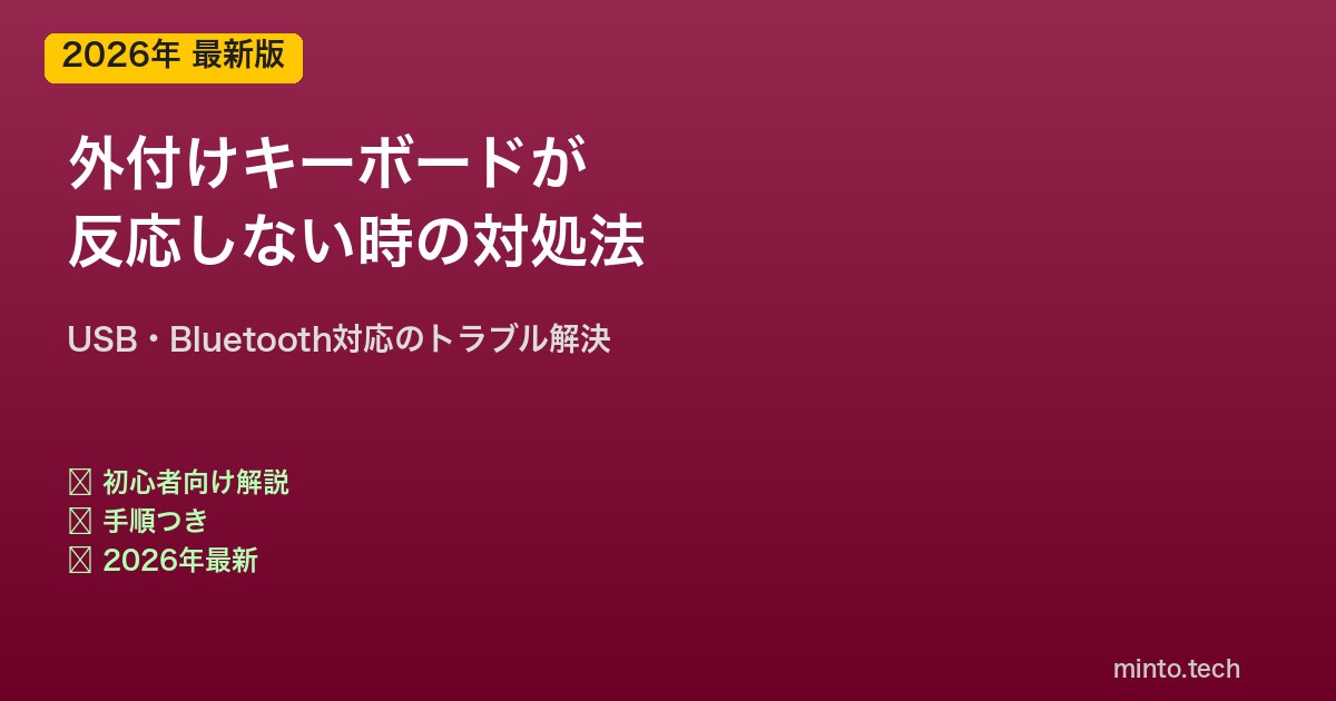 しかし、実際には原因を順番に切り分けていけば、ほとんどのケースは自分で解決できます。USB接続の問題なのか、ドライバーの問題なのか、キーボード設定の問題なのか——この記事では原因の切り分けから具体的な対処法まで、ステップごとにわかりやすく解説します。