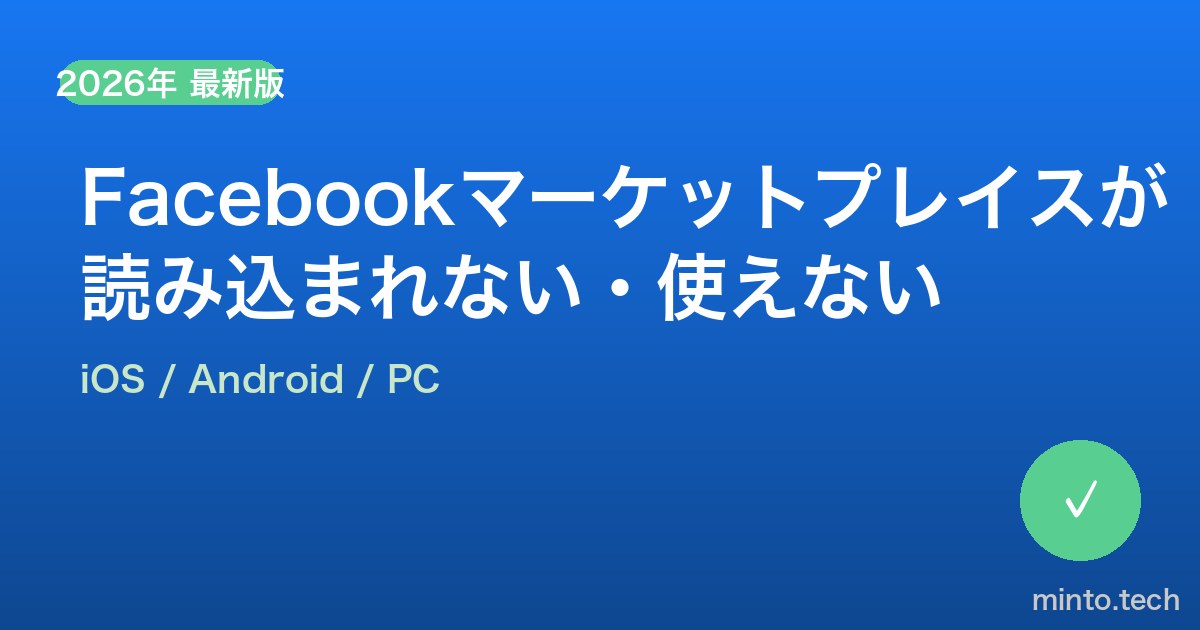 Facebookマーケットプレイスが表示されない、読み込まれない、エラーが出て使えない——こうした問題はアプリのバグやブラウザの設定、アカウントの状態など複数の原因で発生します。本記事では、Facebookマーケットプレイスが使えない場合の原因と対処法をPC・スマホ別に詳しく解説します。