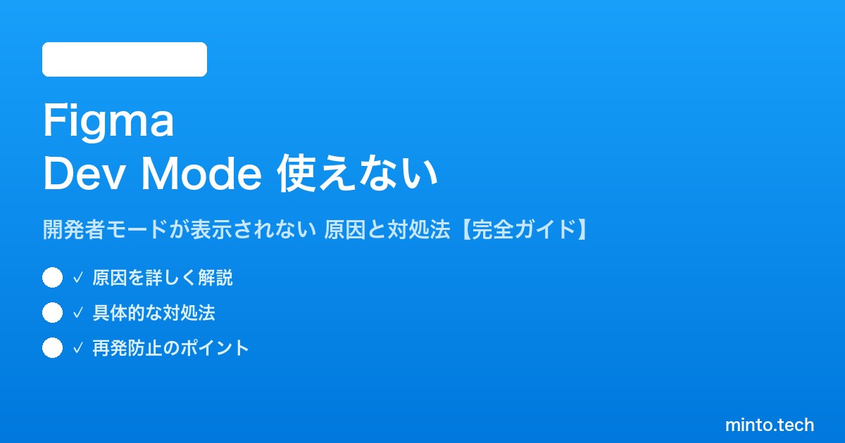 「FigmaのDev Modeが表示されない」「開発者モードのボタンが見当たらない」「Dev Modeに切り替えられない」——そんなお悩みをお持ちではないですか?この記事では、Figma Dev Modeが使えない・表示されない原因をわかりやすく解説し、具体的な対処法を丁寧にご紹介します。