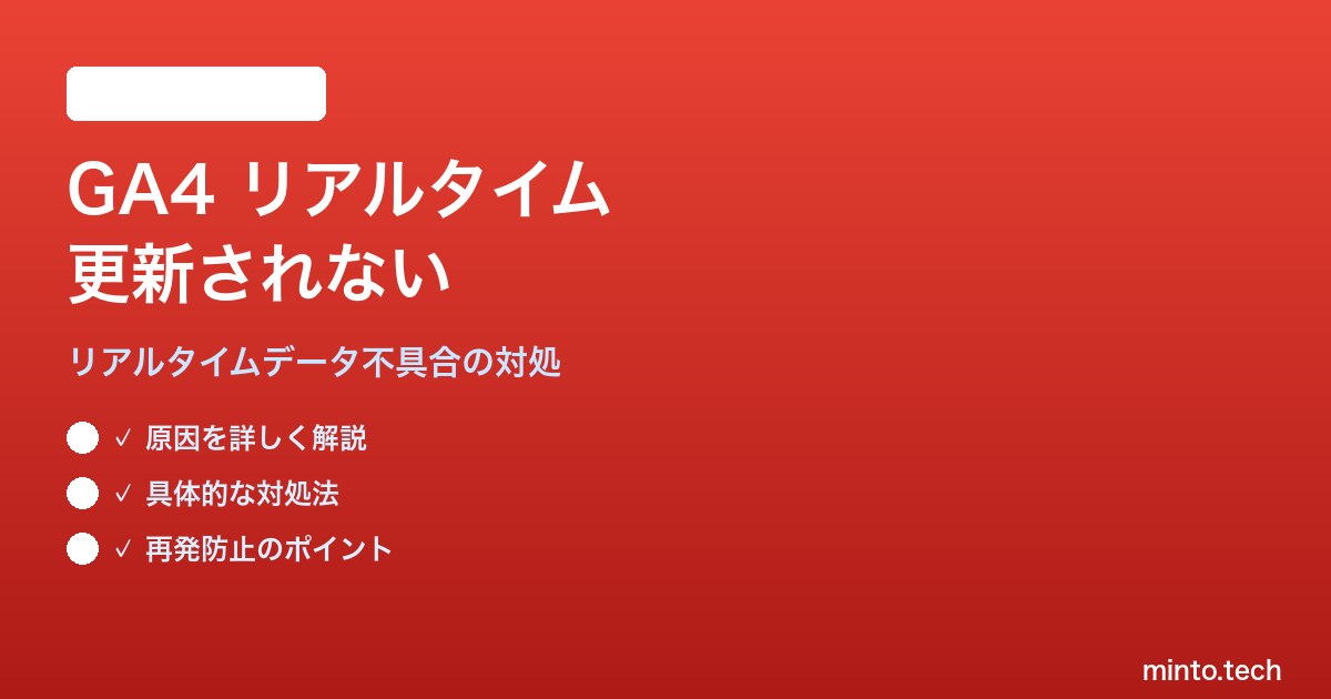 本記事では、GA4のリアルタイムが動かなくなる原因を体系的に整理し、Tag Assistantによるタグ検証、自分のIPを除外しすぎていないかの確認、DebugViewの活用、Consent Mode v2の設定見直し、ITP・広告ブロッカー対策、サーバーサイドタギング時の落とし穴まで、実戦的な復旧手順をわかりやすく解説します。マーケ担当者・個人ブロガー・広告代理店の方まで、広くご活用いただける内容です。