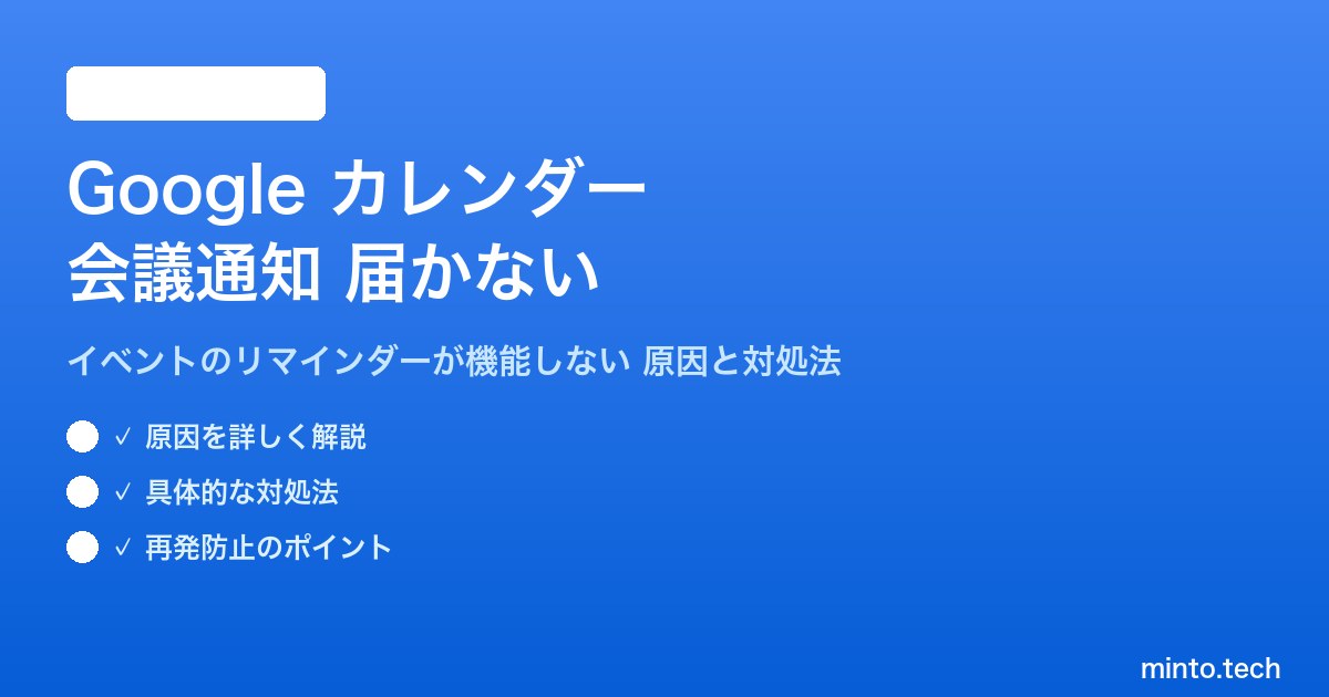 Home / Google / 【2026年最新版】Googleカレンダーの会議・イベント通知が届かない・機能しない原因と対処法【完全ガイド】