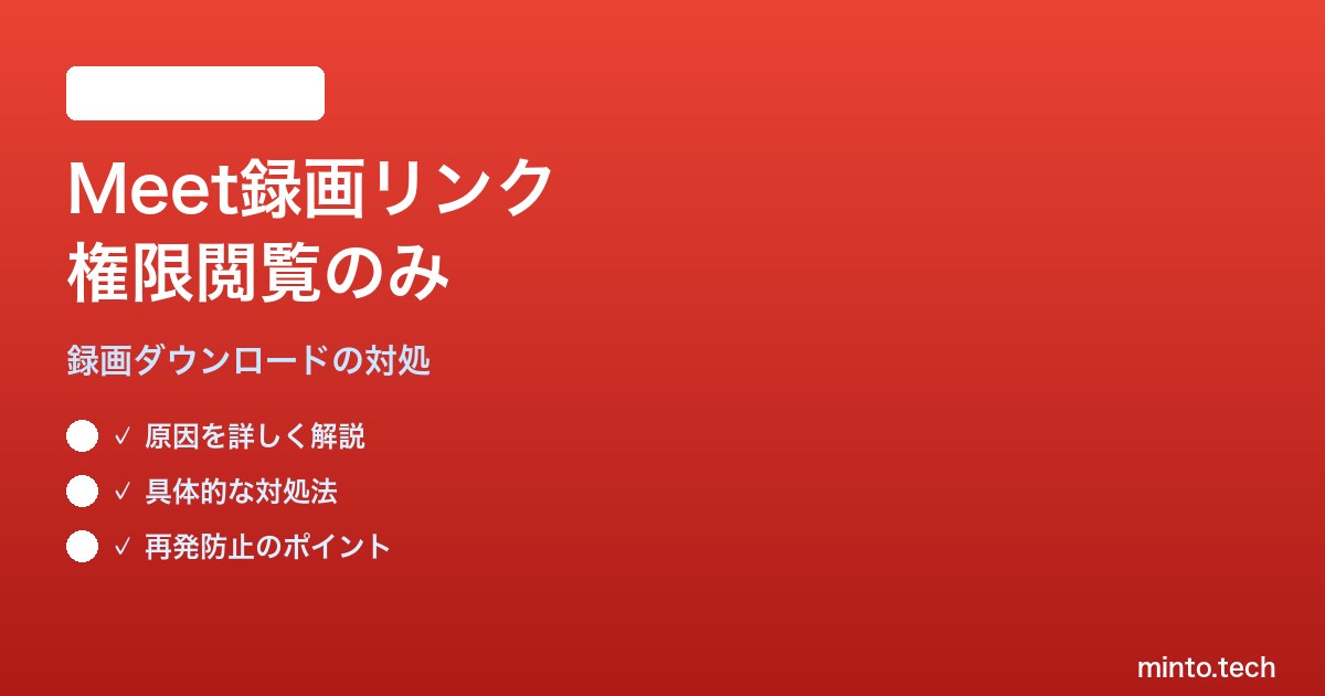 Google ClassroomのMeet録画リンクが「閲覧のみ」固定になる主因は、Driveのデフォルト権限設定、Classroom添付の権限選択、組織ポリシーによる強制ダウンロード禁止、外部共有制限、退職アカウントの孤立ファイルの5つです。教員自身で対応できるのはDrive権限の手動変更とClassroom添付権限の選択であり、組織全体の問題はIT管理者の協力が必要です。