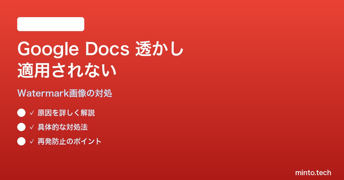 【2026年最新版】Google Docsの透かし(Watermark)画像が適用されない・薄すぎる対処法【完全ガイド】