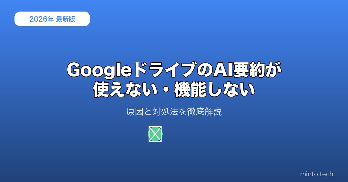 しかし、「要約ボタンが表示されない」「Geminiが応答しない」「特定のファイルで要約できない」といった問題が多くのユーザーから報告されています。本記事では、Google ドライブのAI要約機能が使えない原因と具体的な解決方法を解説します。