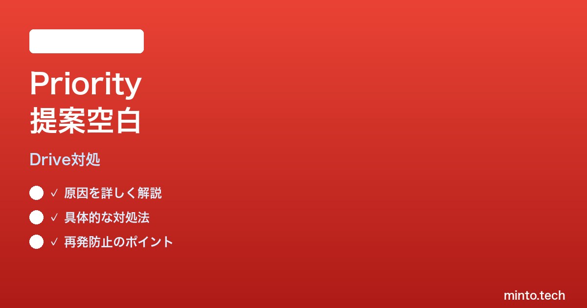 Home / Google / 【2026年最新版】GoogleドライブのPriority Pageで提案が表示されない時の対処法【完全ガイド】