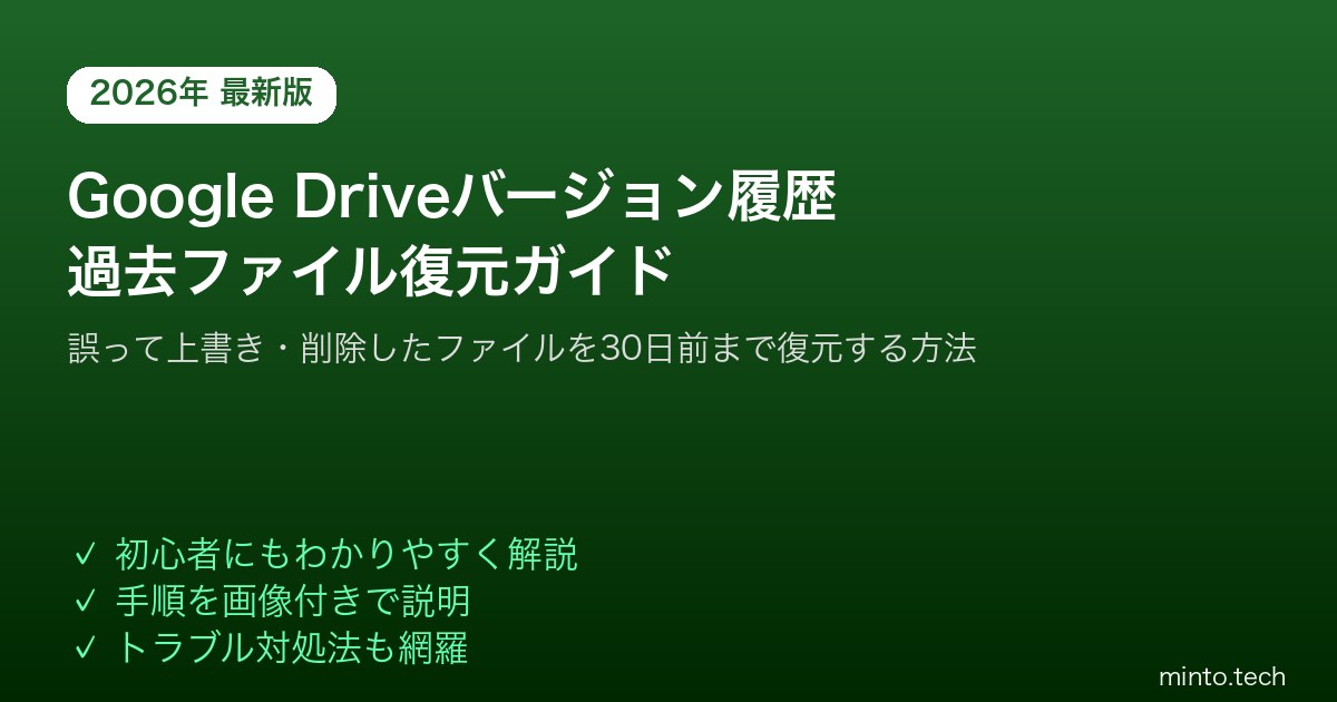 Home / Google / 【2026年最新版】Google Driveのバージョン履歴で過去のファイルを復元する方法【完全ガイド】
