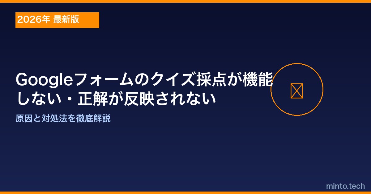 Home / Google / 【2026年最新版】Googleフォームのクイズ採点が機能しない・正解が反映されない原因と対処法