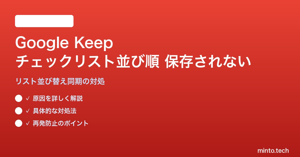 Home / Google / 【2026年最新版】Google Keepのチェックリストの並び順が保存されない・元に戻る対処法【完全ガイド】