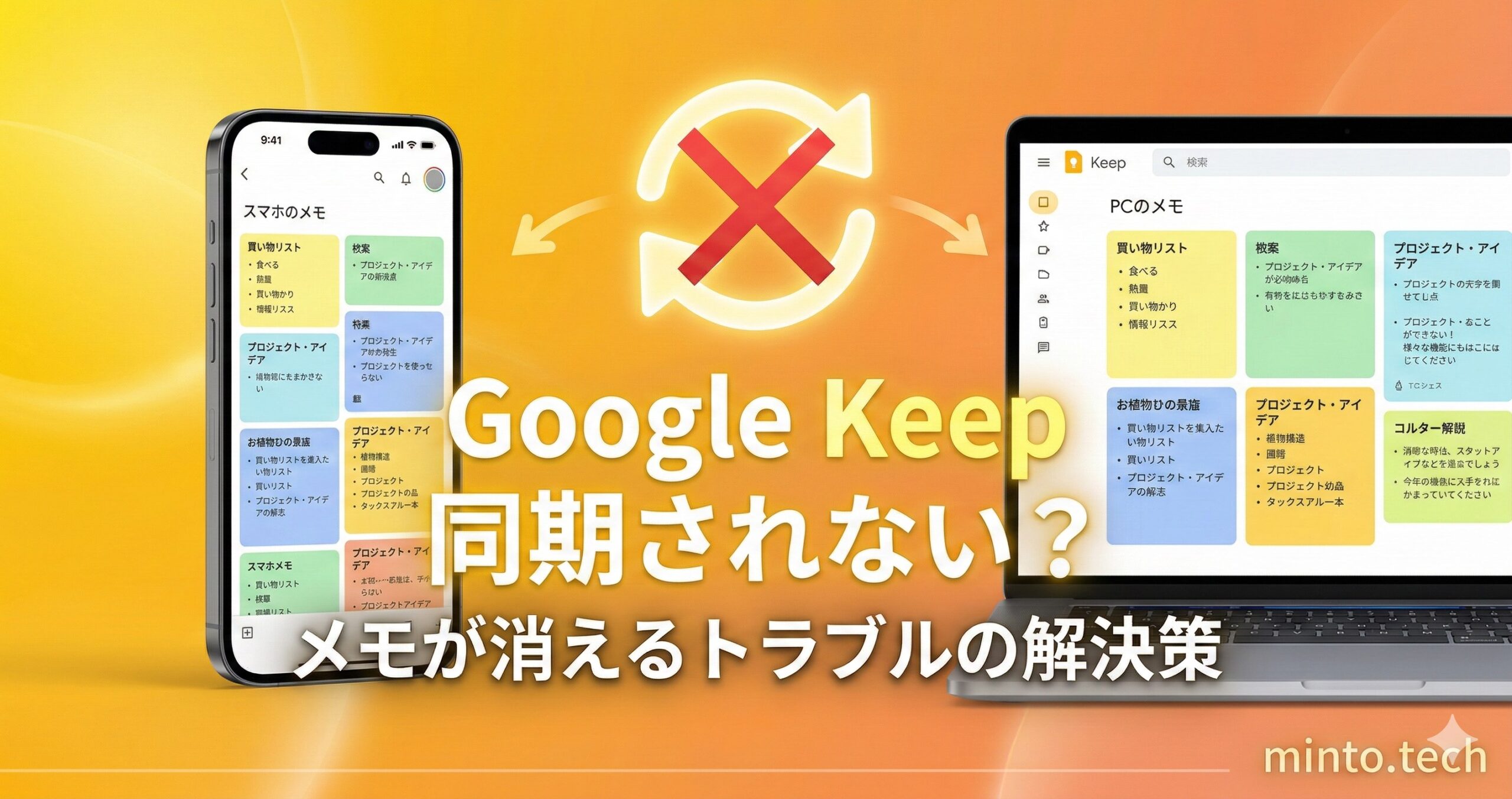 この記事では、Google Keepが同期されない・メモが消える原因を網羅的に解説し、Android・iPhone・PC(Web版)それぞれの環境で確実に同期を復旧させる対処法をステップ形式でわかりやすく紹介します。初心者の方でも順番に試していけば解決できる内容になっていますので、ぜひ最後までお読みください。