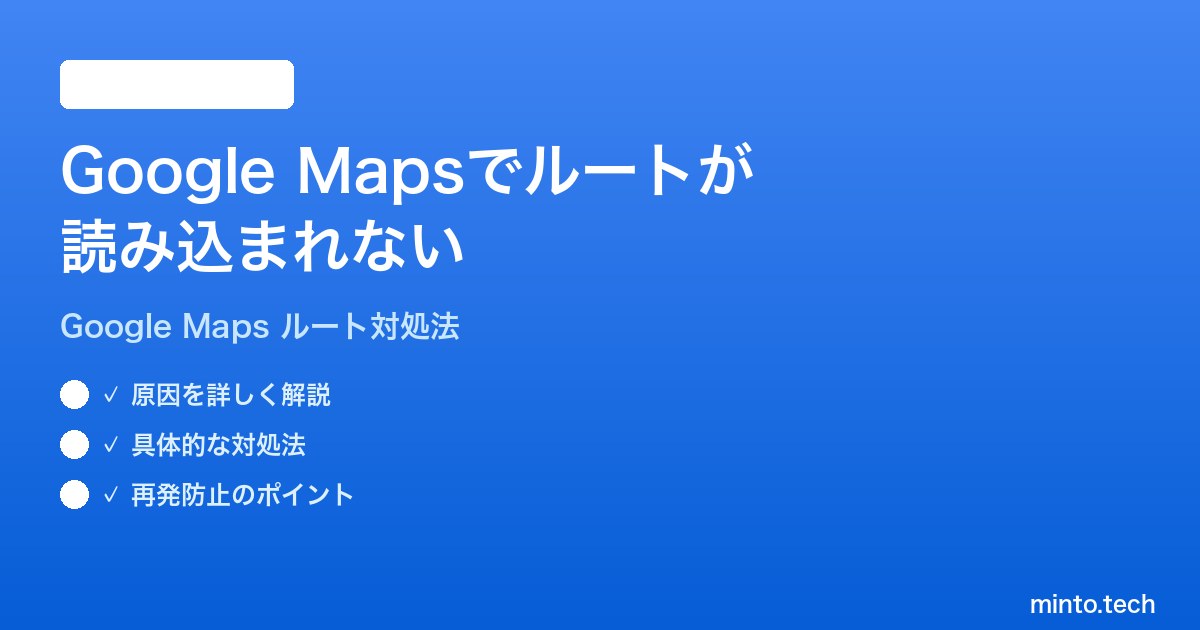 Google Mapsでルート・経路案内が読み込まれない問題の原因と対処法を以下にまとめます。